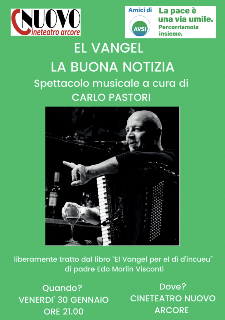 Carlo Pastori porta sulle scene una versione da osteria di questo piccolo capolavoro tuttora attualissimo, introducendo i brani del Vangelo, dall’Annunciazione alla Resurrezione, con brani della tradizione e musiche originali suonati con ka sua fisarmonica.