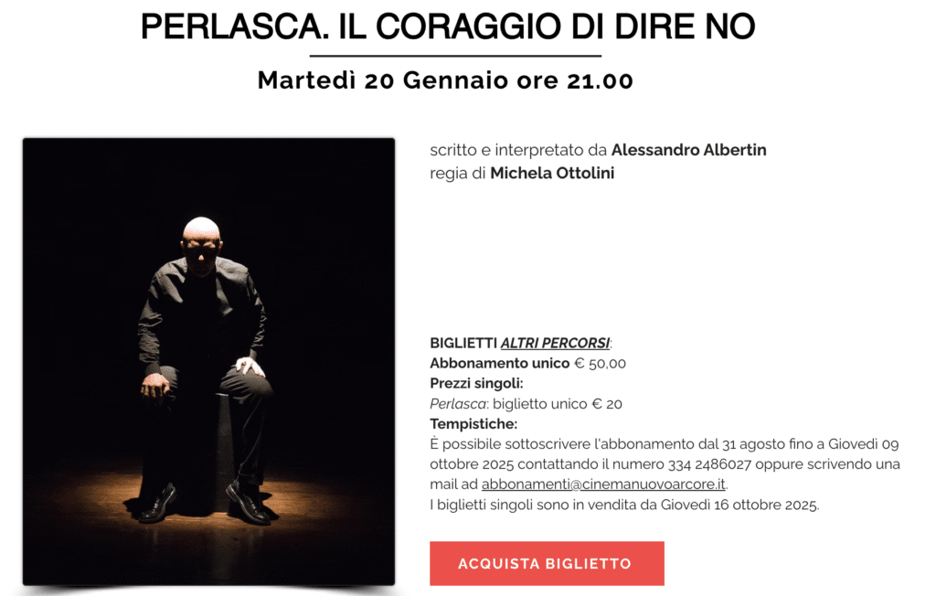 Con straordinaria bravura Alessandro Albertin dà vita a Perlasca e ai personaggi che l’hanno affiancato in questa straordinaria avventura.