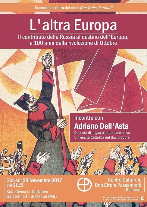 Il Centro Culturale “Don Ettore Passamonti” ha organizzato il secondo incontro del ciclo “Quo Vadis Europa?” dal titolo “L’altra Europa”, il contributo della Russia al destino dell’Europa a 100 anni dalla rivoluzione di Ottobre.