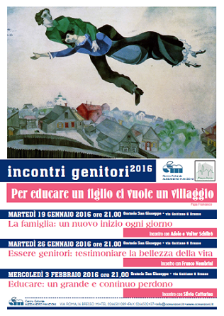 Terzo ed ultimo appuntamento del nuovo ciclo “Incontri genitori 2016” organizzato dal Centro Culturale “A. Manzoni” dal titolo “Educare. Un grande e continuo perdono” con Silvio Cattarina, responsabile della comunità di recupero “L’Imprevisto” a Pesaro.
