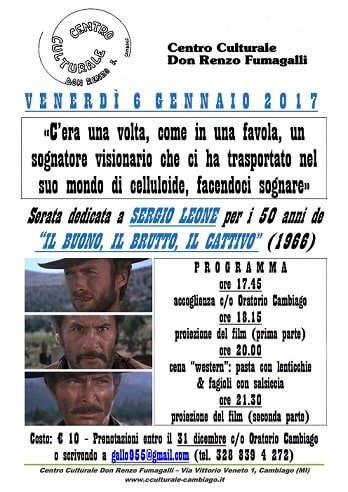 Il Centro Culturale “Don Renzo Fumagalli” organizza la proiezione del film dal titolo “Il buono, il brutto e il cattivo”, di Sergio Leone (Italia, 1966).