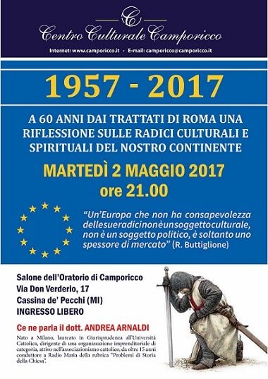 Il Centro Culturale “Camporicco” organizza un incontro dal titolo “1957-2017. A 60 anni dai trattati di Roma una riflessione sulle radici culturali e spirituali del nostro continente”.