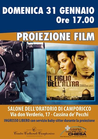 In occasione della “Festa della Famiglia 2016” il Centro Culturale “Camporicco” invita alla visione del film “Il figlio dell’Altra”. Il film narra la storia di Joseph, un ragazzo che durante la visita per il servizio di leva nell’esercito israeliano, scopre di non essere il figlio biologico dei suoi genitori, poiché appena nato è stato scambiato per errore con Yacine, palestinese dei territori occupati della Cisgiordania. La rivelazione getta lo scompiglio tra le due famiglie, costringendo ognuno a interrogarsi sulle rispettive identità e convinzioni, nonché sul senso dell’ostilità che continua a dividere i due popoli.