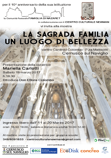 Il Centro Culturale “Newman” in collaborazione con la Comunità Pastorale Famiglia di Nazaretico organizza la mostra sulla Sagrada Familia, che rimarrà allestita da sabato 11 a lunedì 20 marzo 2017.
