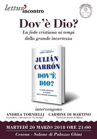 Il Centro Culturale “Campo della Stella” ha organizzato la presentazione del libro “Dov’è Dio. La fede cristiana al tempo della grande incertezza. Una conversazione con Andrea Tornielli” di Julián Carrón (Piemme Edizioni, 2017).