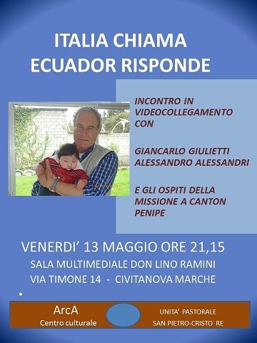 Il Centro Culturale “Arca” organizza l’incontro in videoconferenza dal titolo “Italia chiama, Ecuador risponde”, la testimonianza di Giancarlo Giulietti e gli ospiti della Missione a Canton Penipe.