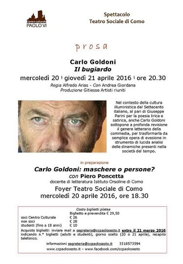 Il Centro Culturale “Paolo VI” ha organizzato la rappresentazione teatrale “Il bugiardo” di Carlo Goldoni. Nel contesto della cultura illuministica del Settecento italiano, al pari di Giuseppe Parini per la poesia lirica e satirica, anche Carlo Goldoni sottopone a profonda revisione il genere letterario della commedia, per trasformarla da semplice opera di evasione in strumento di lucida analisi delle dinamiche presenti nella società del tempo.