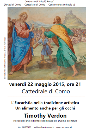Il Centro Culturale Paolo VI propone per il ciclo di incontri “Pane e vin non ci mancava” per Expo 2015, l’incontro dal titolo “L’Eucaristia nella tradizione artistica. Un alimento anche per gli occhi”. Attraverso il fascino della parola e delle immagini che saranno proiettate, Timothy Verdon, uno dei maggiori specialisti al mondo di arte sacra, proporrà un percorso alla scoperta dello stretto legame tra l’Eucaristia e l’arte.