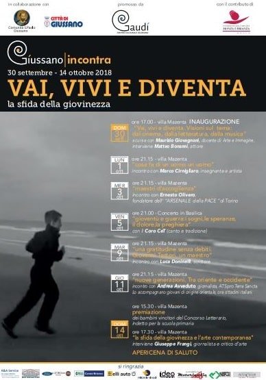A conclusione della manifestazione GIUSSANOINCONTRA 2018 segnaliamo l’incontro dal titolo “La sfida della giovinezza e l’arte contemporanea” con Giuseppe Frangi, giornalista e critico d’arte