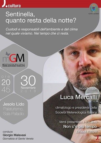 L’Associazione “Giovanni Marcato” organizza l’incontro dal titolo “Sentinella, quanto resta della notte?“. La drammatica situazione ambientale spiegata da Luca Mercalli, climatologo e Presidente della Società Meteorologi Italiani.