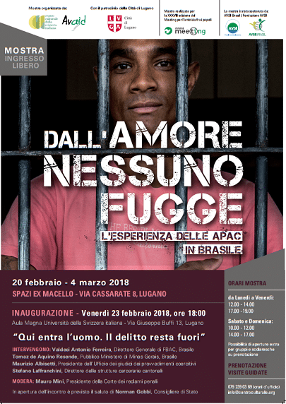 Esposizione della mostra “Dall’amore nessuno fugge. L’esperienza delle APAC in Brasile”, realizzata in occasione della manifestazione “Meeting per l’Amicizia fra i popoli”, anno 2016, promossa dal Centro Culturale della Svizzera Italiana.