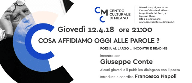 Il Centro Culturale di Milano organizza per il Ciclo “Poesia al largo…” l’evento “Cosa affidiamo oggi alle parole?”, letture poetiche e conversazioni con Giuseppe Conte.