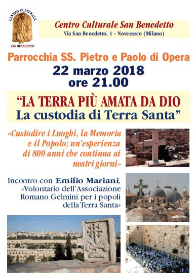 Il Centro Culturale “San Benedetto” organizza di Opera un incontro sull’esperienza che da da 800 anni i frati francescani vivono in Terra Santa.