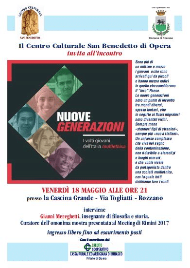 Il Centro Culturale “San Benedetto” organizza l’incontro dal titolo “Le nuove generazioni; i volti giovani di un’Italia multietnica”.