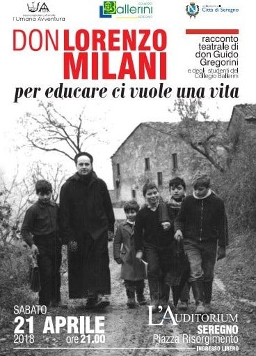 L’Associazione Culturale “l’Umana avventura” ed il Collegio “Ballerini” organizzano “Don Lorenzo Milani. Per educare ci vuole una vita”, racconto teatrale curato da Don Guido Gregorini e degli studenti del Collegio Ballerini sulla figura di Don Milani.