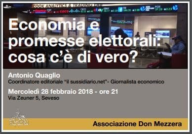 L’Associazione “Don Mezzera” organizza un incontro pubblico sul tema “Economia e promesse elettorali: cosa c’è di vero?” con Antonio Quaglio, giornalista economico e attuale coordinatore editoriale de “Il Sussidiario.net”
