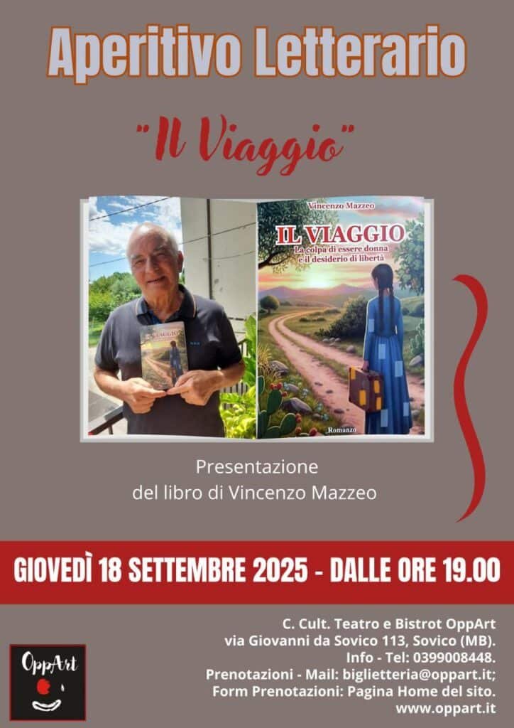 Sovico (MB): Aperitivo letterario “Il viaggio”. Presentazione del libro di Vincenzo Mazzeo