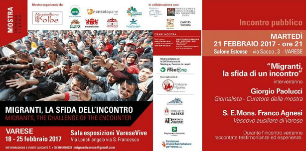 Incontro di presentazione della mostra dal titolo “Migranti, la sfida dell’incontro” organizzata anche dal Centro Culturale “Massimiliano Kolbe”, che rimarrà esposta sino al 25 febbraio 2015. presso la Sala esposizioni VareseVive, via Lonati.